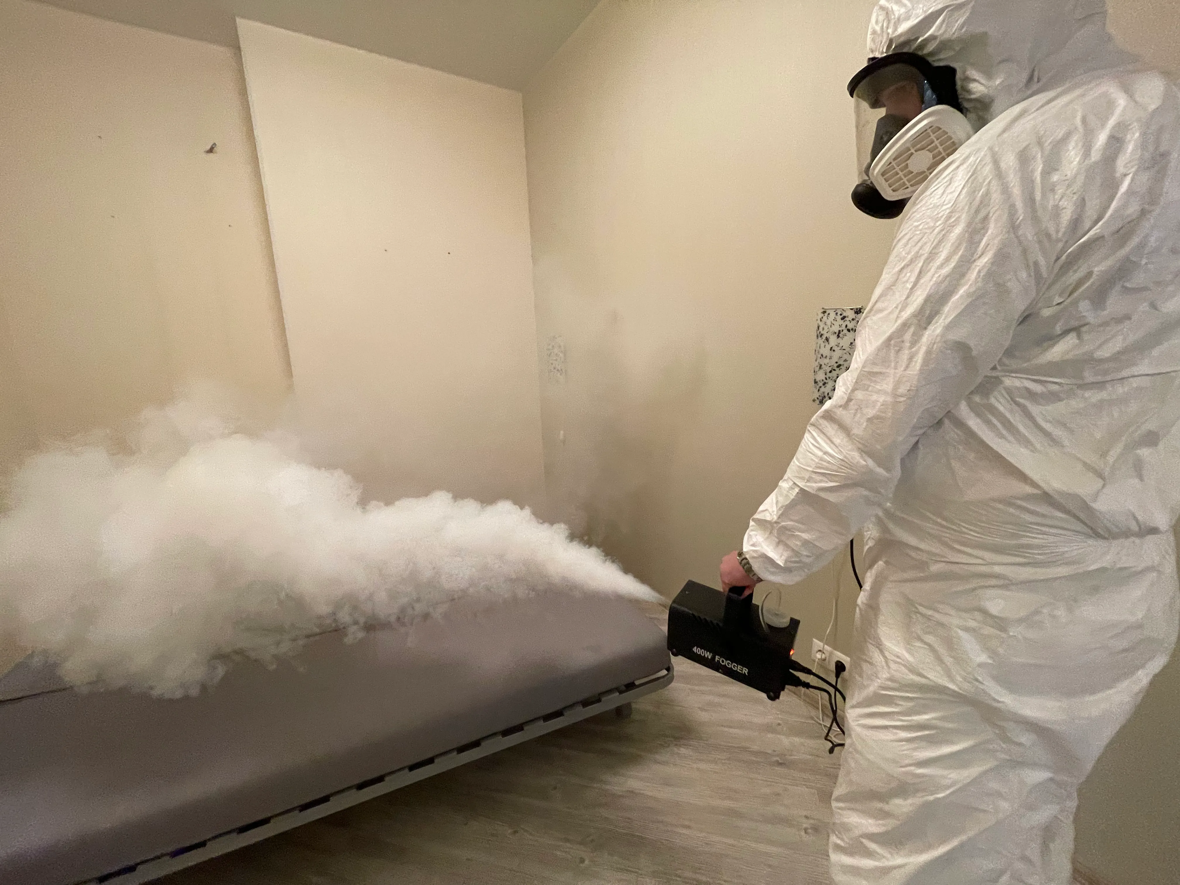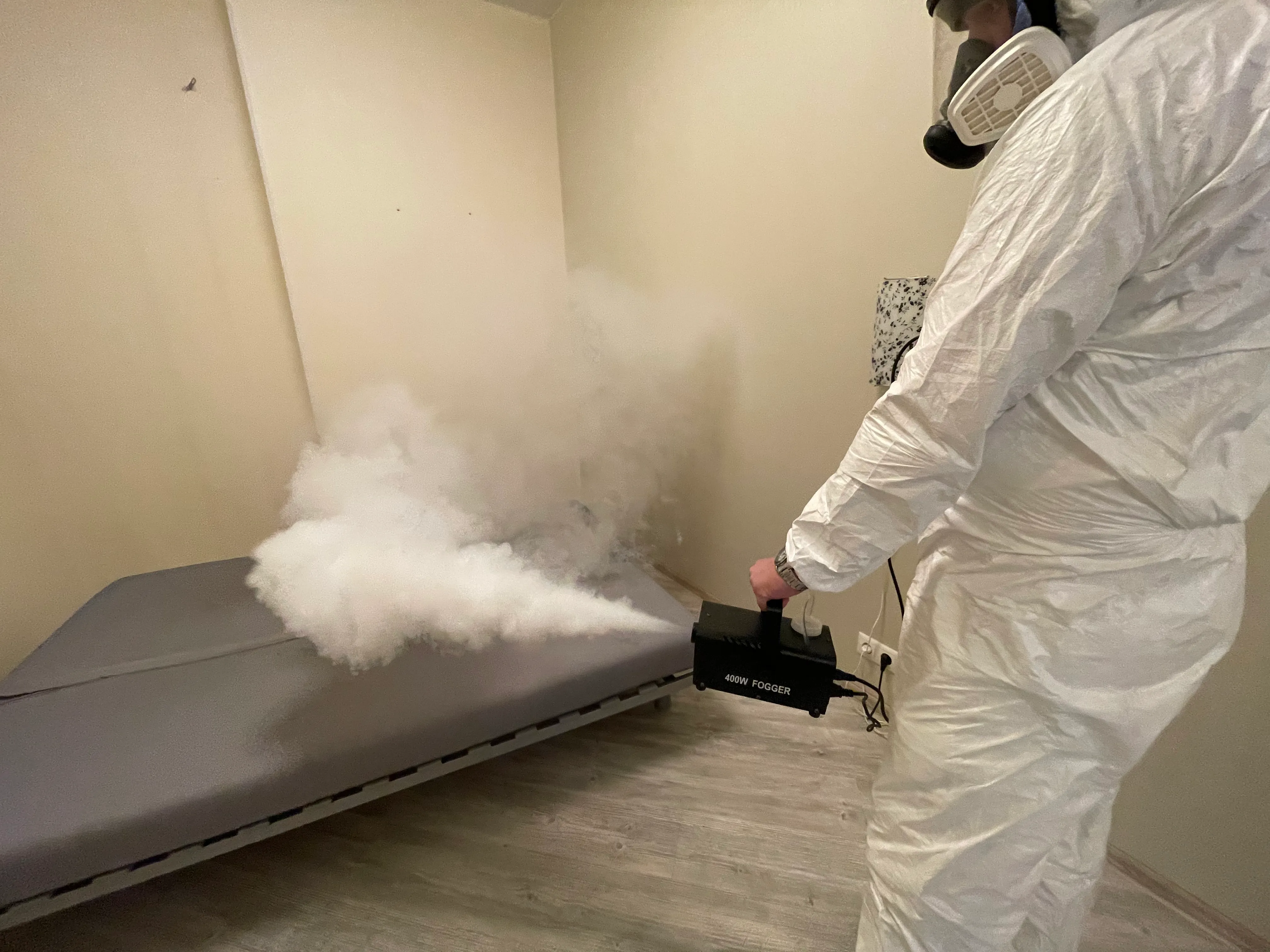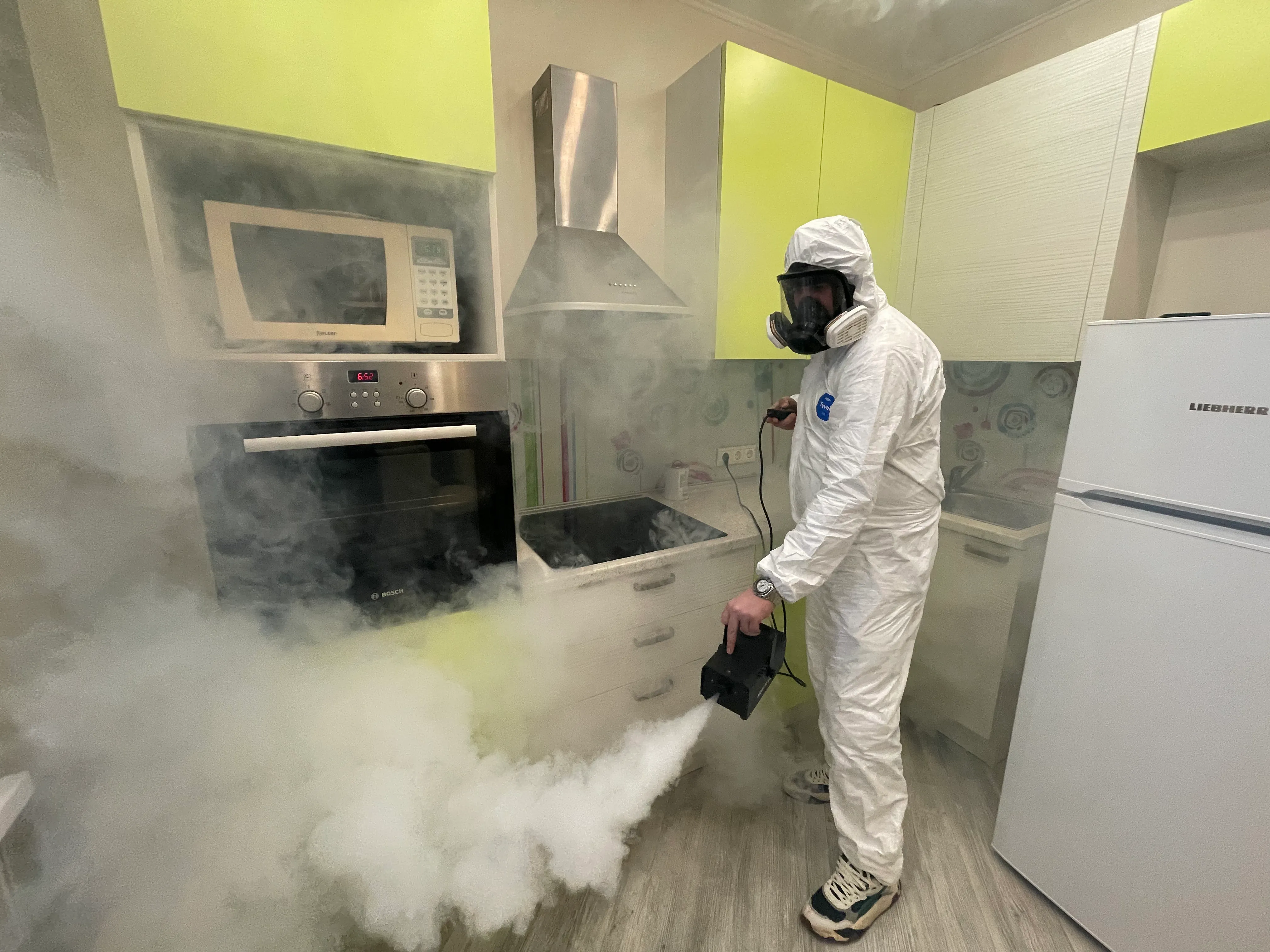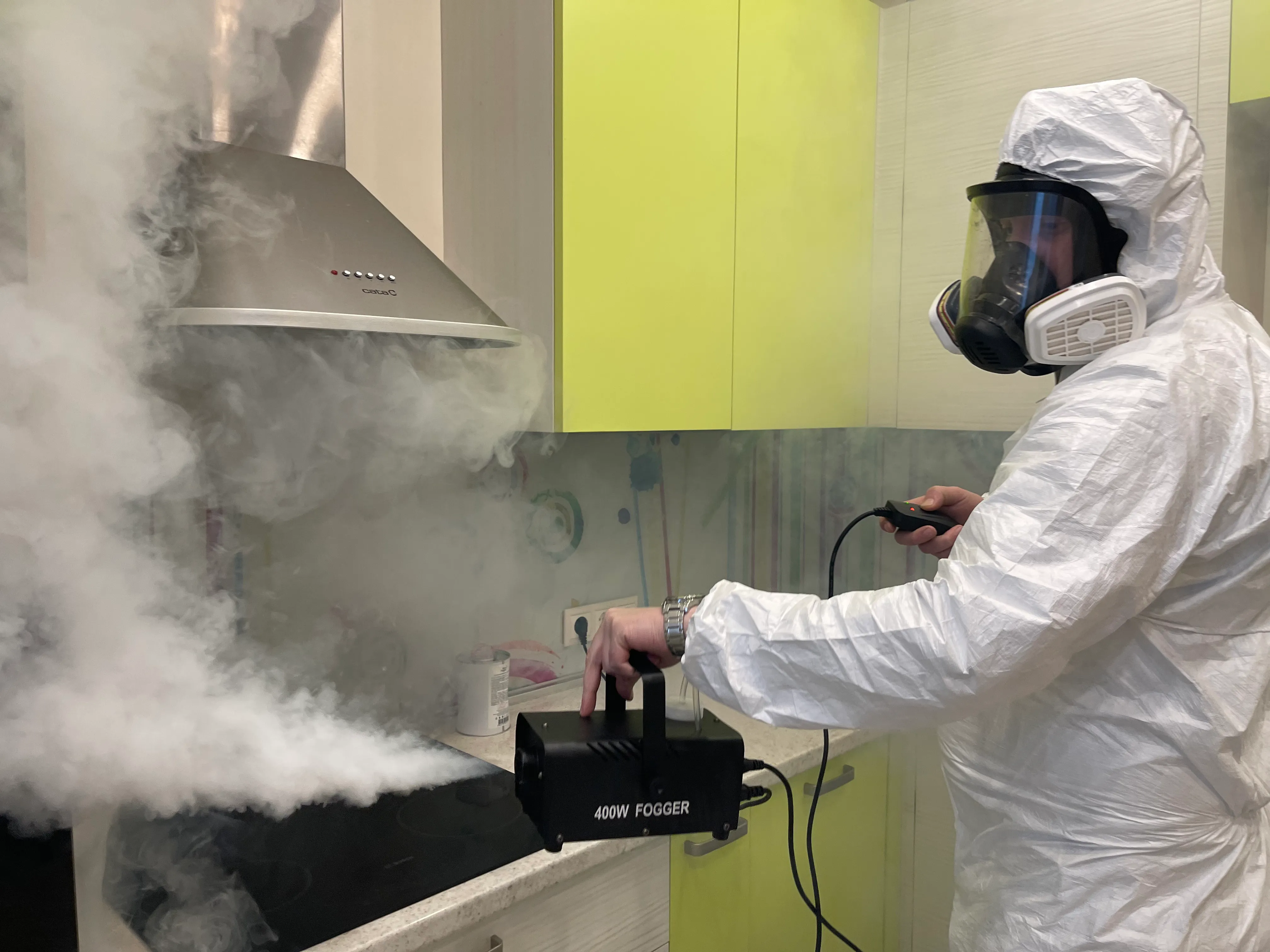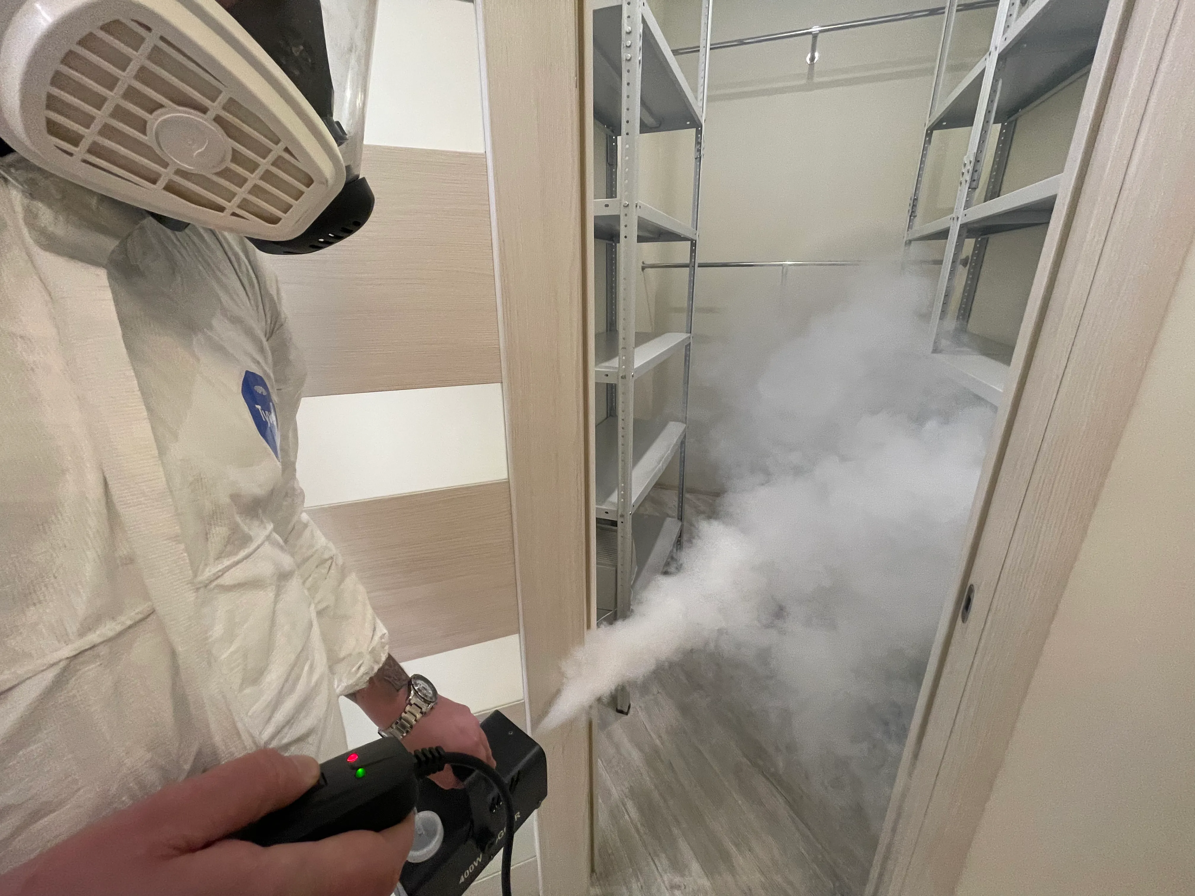 - Современное оборудование. Пользуемся для работы генераторами горячего и холодного тумана, что позволяет мелким частицам проникать в щели, за плинтусы и шкафы, уничтожая до 99,9% насекомых, грызунов, микроорганизмов
