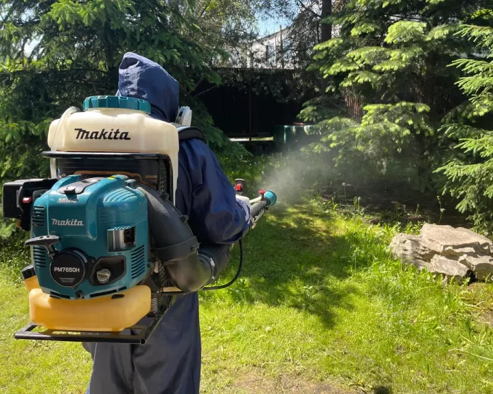 Борьба с кровососущими проводится с применением генератора горячего тумана, создающего облако из инсектицидов, уничтожающих вредителей.